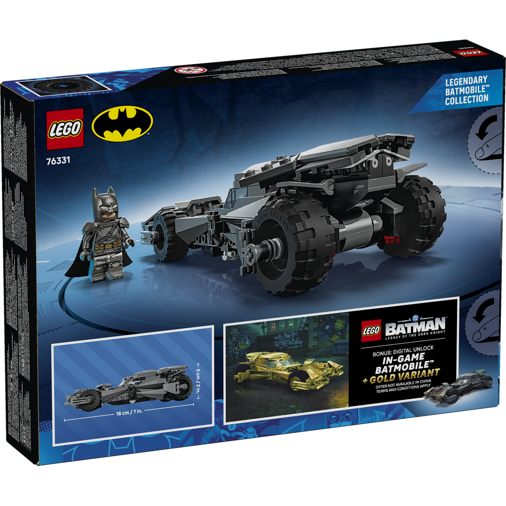 DIMENSIONS – The 220-piece LEGO® DC Batman™ Batman v Superman™ Batmobile™ measures over 2 in. (5 cm) high, 7 in. (18 cm) long and 4 in. (10 cm) wide