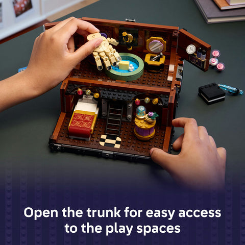 Dimensions – When closed, this 828-piece trunk playset and room decor display piece measures over 5 in. (13 cm) high, 9 in. (23 cm) wide and 4 in. (11 cm) deep