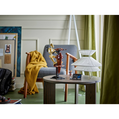 Dimensions – The Battle Droid buildable figure on the STAP in this 1,088-piece set measures over 15 in. (38 cm) high, 11.5 in. (30 cm) long and 5.5 in. (14 cm) wide